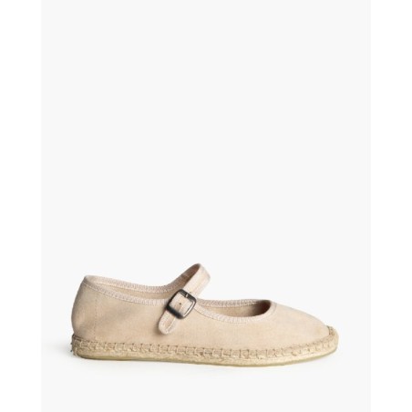 Zapato plano tipo mary jane con suela de yute. Cierre mediante hebilla en el lateral. Acabado en punta