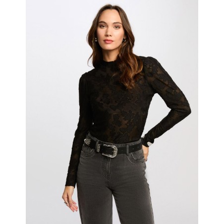 Camiseta manga largaCorte ajustadoCuello altoManga largaEfecto encaje
