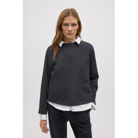 Jersey cálido de cuello redondo, perfecto para ofrecer calidez al cuello.