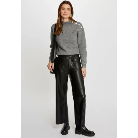 Jersey manga larga con botones decorativos en el hombro