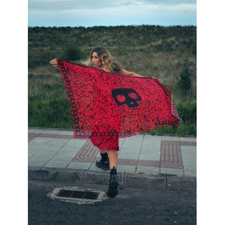 Pañuelo grande con animal total pint calaveras & ama en rojo pasión, no querrás quitartelo!