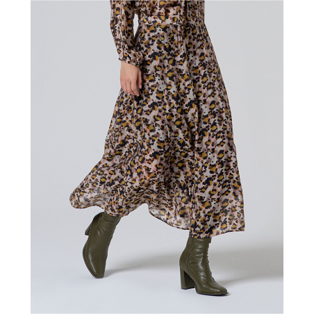 Falda midi con vuelo y acabado ligero.