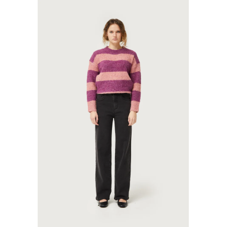 Pantalón vaquero largo de color negro lavado. Con cintura de tiro medio y pernera recta. Cierre con botón y cremallera. Bolsillos laterales y traseros y trabillas para el cinturón.
