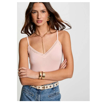 TOP TIRANTES FINOS CON BANDAS DE ENCAJE, CORTE AJUSTADO, ESCOTE EN V, TIRANTES FINOS AJUSTABLES, BANDAS DE ENCAJE EN EL PECHO