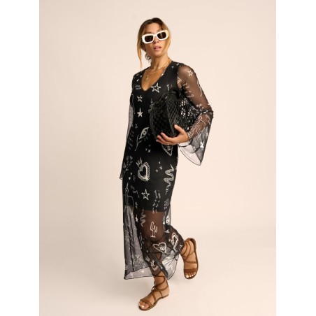 Vestido midi de tul total print Poemas, lleva en el interior forro de tirante hasta medio muslo. Todo el espíritu aire retro hecho cuadro y ahora hecho vestidazo!!!